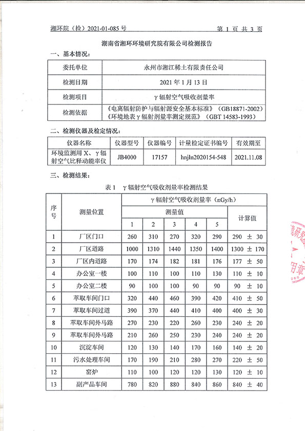 永州市湘江稀土有限責(zé)任公司檢測報(bào)告